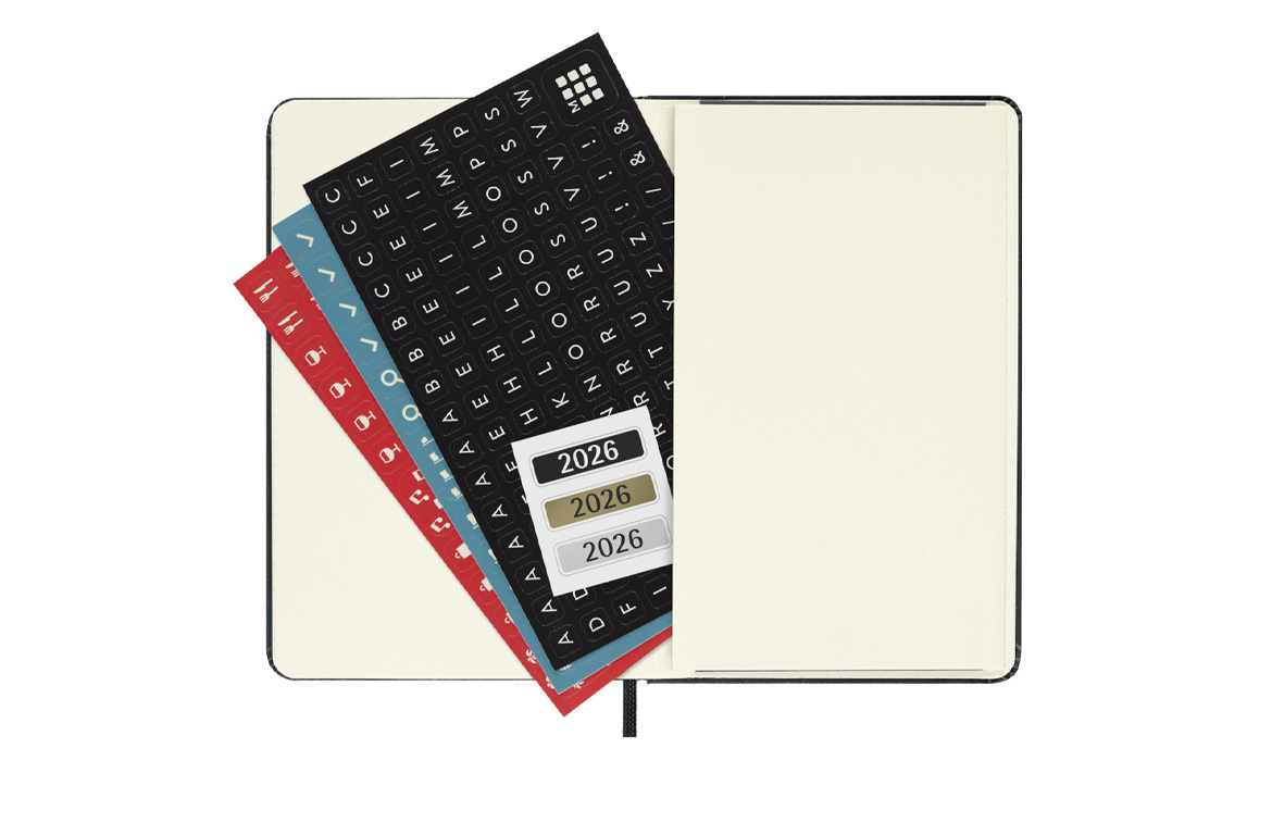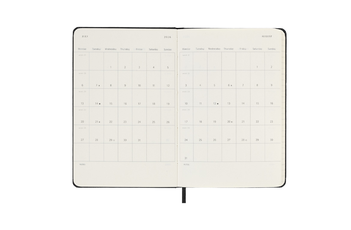 Settimanale orizzontale, copertina morbida, 12 mesi, Nero