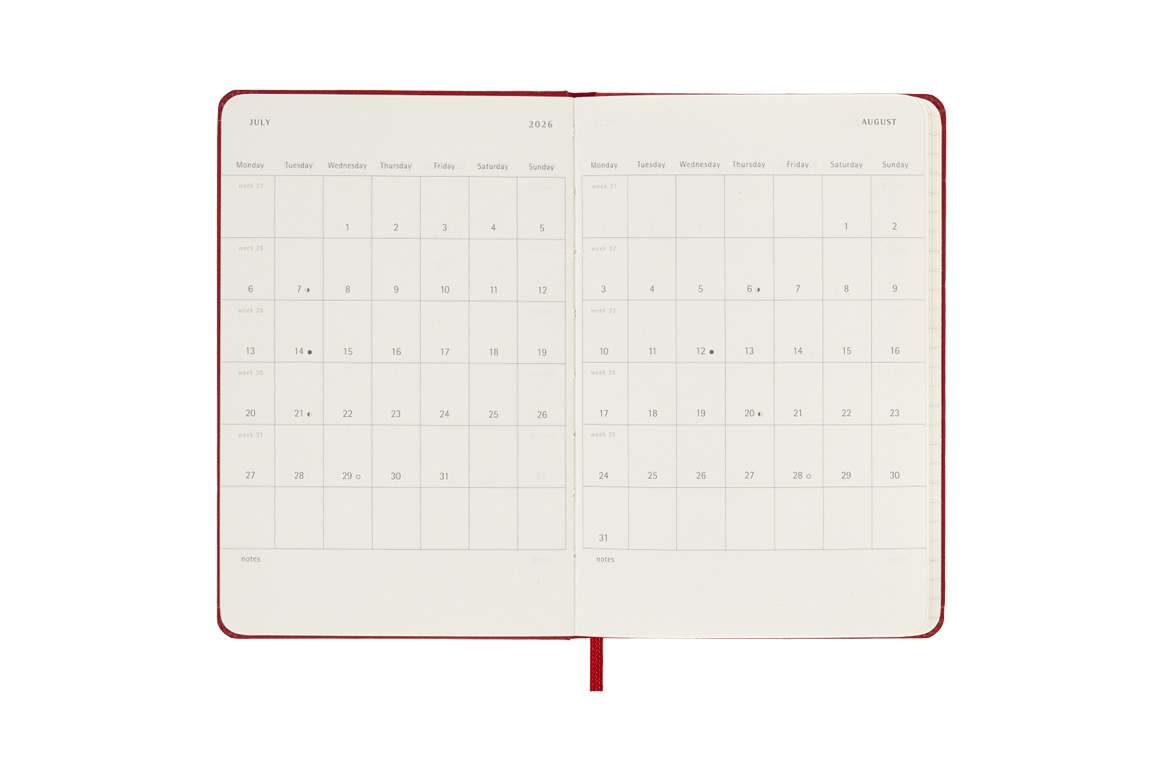 Moleskine Agenda Classic Pocket - 2026 Giornaliera 9x14 - Rigida - Rossa