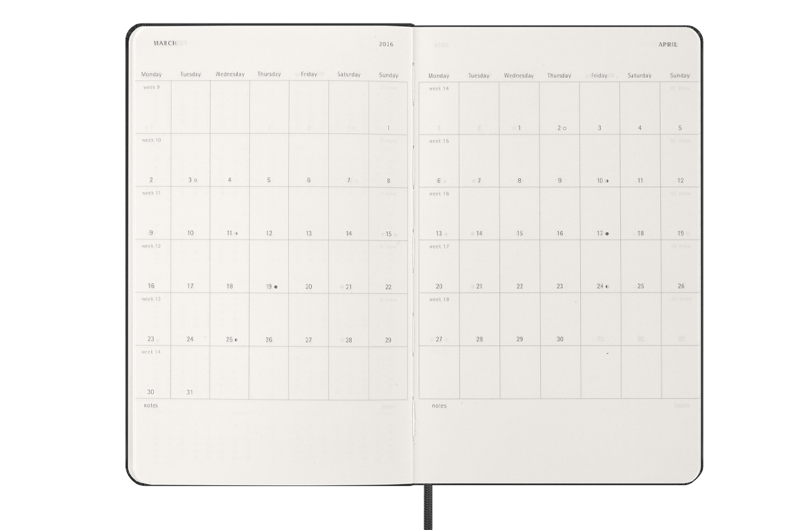 Giornaliera, copertina rigida, 12 mesi, Nero
