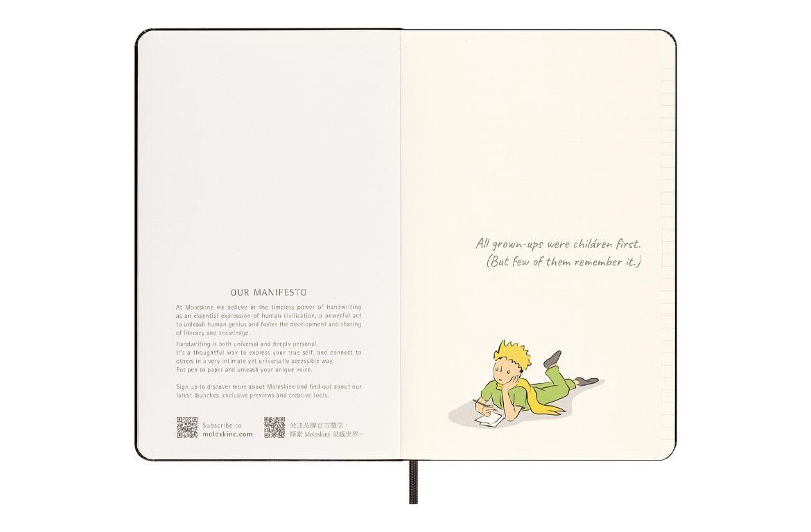- Taccuino con copertina rigida con illustrazioni e citazioni originali tratte da Le Petit Prince