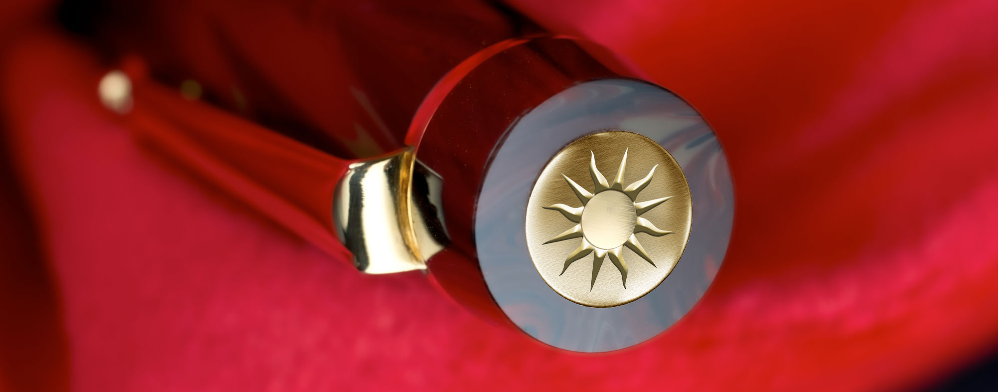 Barocco: stilografica, minuterie in placcato oro a 24 carati, cabochon in testa, cartuccia e converter, pennino acciaio placcato oro, disponibile nelle gradazioni: EF, F, M, B, Stub 1.1, Stub 1.5, Flex EF e Flex F.