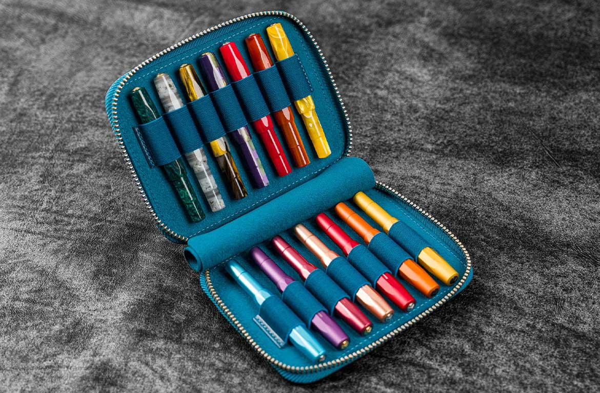 Galen Leather Collector Pen Case for 14 kaweco pens - C. H. Ocean Blue