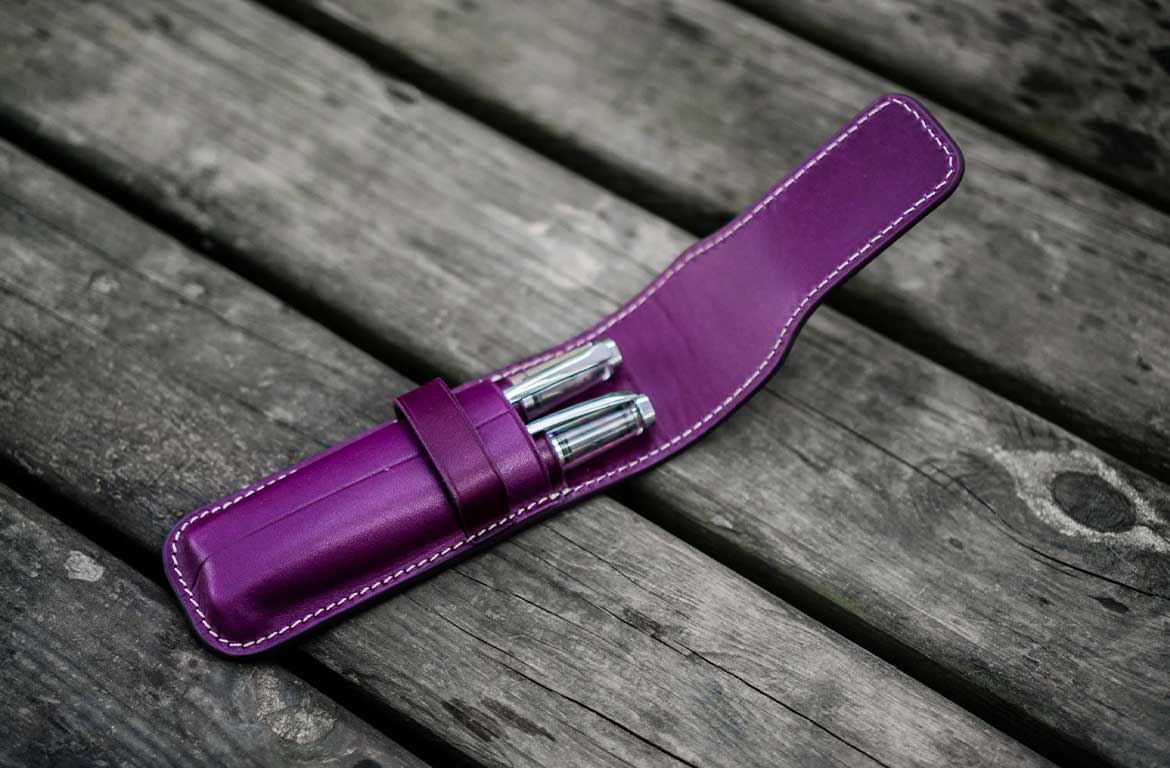 Galen Leather Flap Pen Case - Purple - 2 Posti
