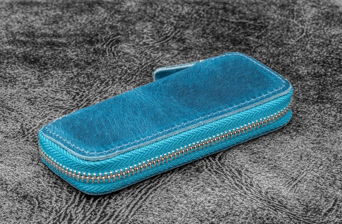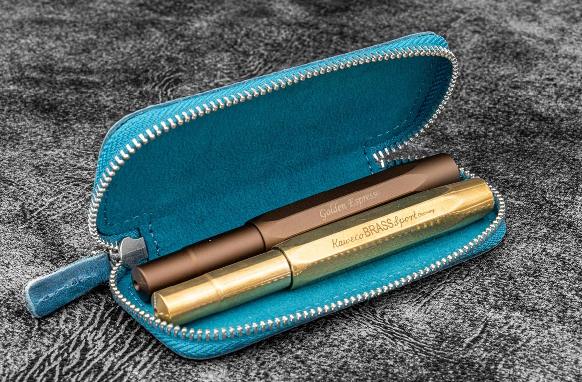 Galen Leather Zippered Pen Case per Kaweco - Pocket Pen - 2 Posti - C.H. Ocean Blue