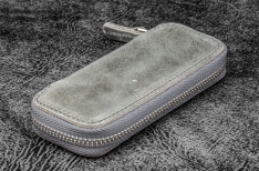 Galen Leather Zippered Pen Case per Kaweco - Pocket Pen - 2 Posti - C.H. Smoky