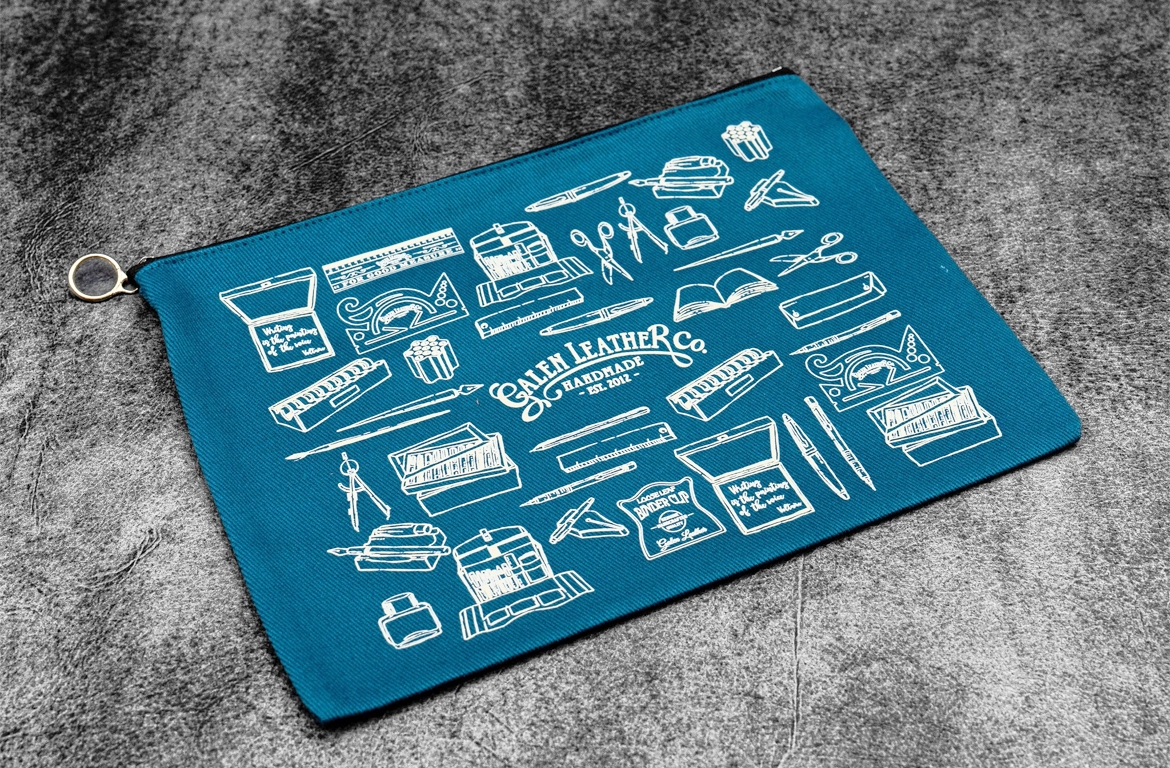 Galen Leather Pochette in pelle e tela – Multiuso - Formato A5 - Blu