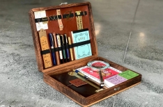 Secoli fa, le scatole da scrittura permettevano alle persone di trasportare la propria cancelleria e gli strumenti di scrittura da un luogo all'altro. Queste scatole erano piccole e portatili e fungevano sia da contenitore che da superficie di scrittura. Oggi, gli scrittori analogici e gli appassionati di creatività possono ancora godere di questo affascinante oggetto con la scatola da scrittura di Walden Woodworkers Co. di Galen Leather. Abbiamo collaborato con Walden Woodworkers Co. per realizzare questa splendida e unica scatola da scrittura.