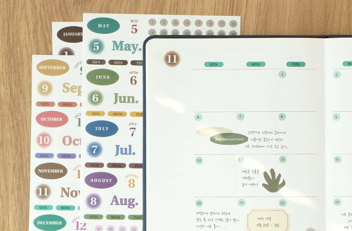 Un adesivo con data che può decorare il tuo diario con caratteri accurati, grafia carina e colori colorati.