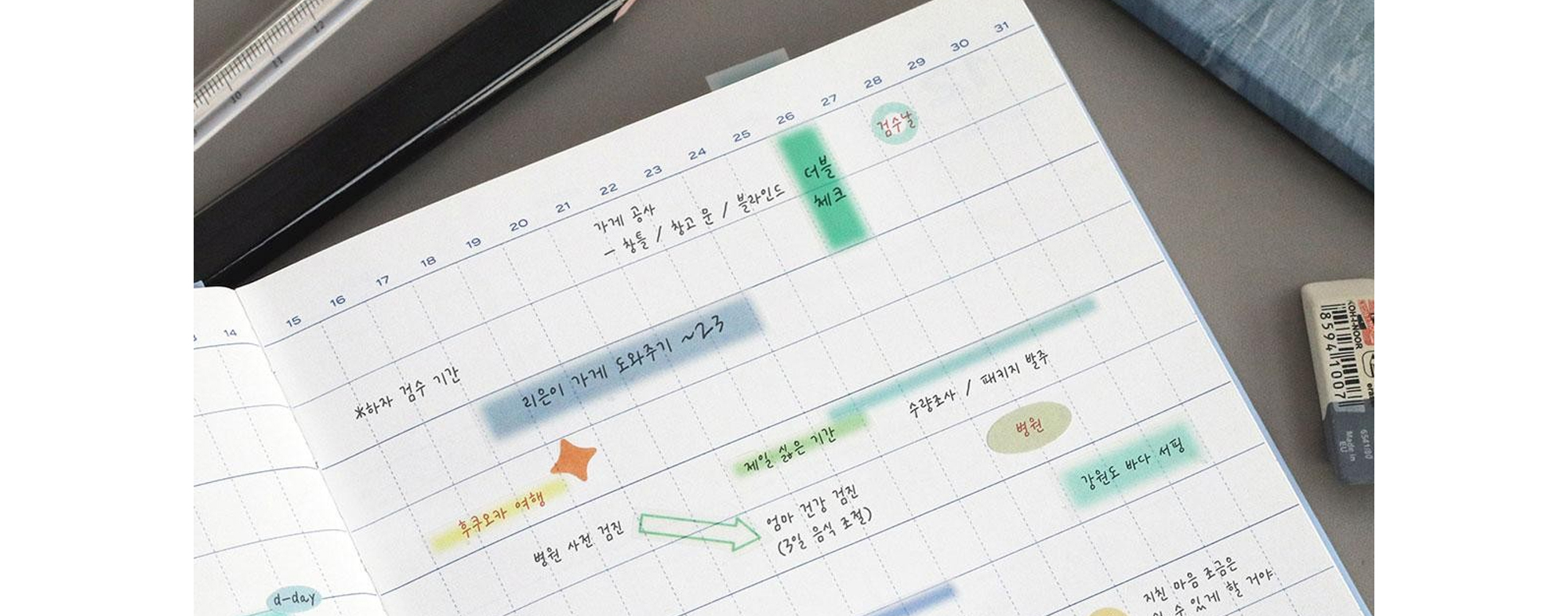 Evidenziatore e strisce adesive rimovibili/segnalibri in vari colori e grafiche.