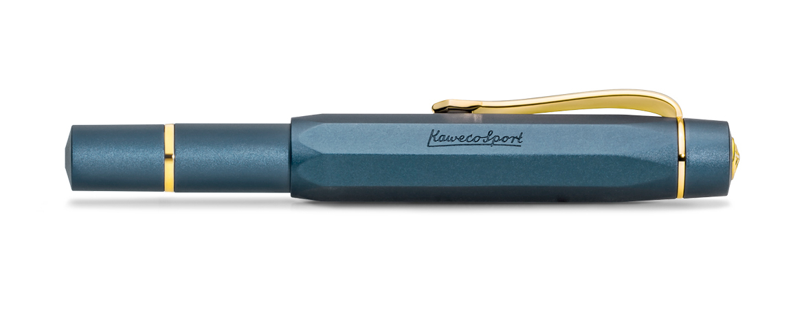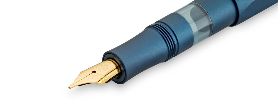 La penna stilografica è disponibile con pennino in acciaio placcato oro nelle nostre cinque misure, da extra fine (EF) a extra broad (BB). Il pennino da 190 grammi può essere facilmente sostituito in qualsiasi momento. Racchiusa in un raffinato cofanetto rotondo con il classico design Kaweco, la Kaweco Piston Sport AL Navy è un regalo ideale per le festività natalizie.