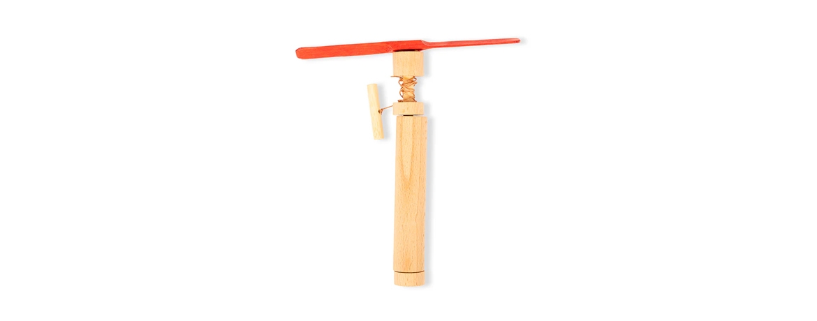 Basta ruotare il lanciatore in senso orario e tirare velocemente per rilasciare l'elicottero.