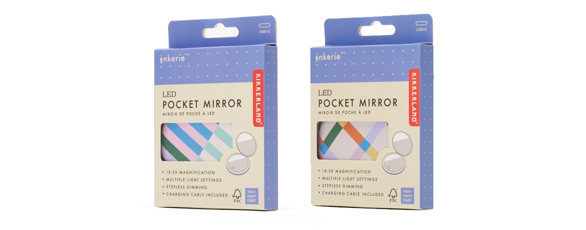 Kikkerland Inkerie Specchietto tascabile a LED - Colori assortiti