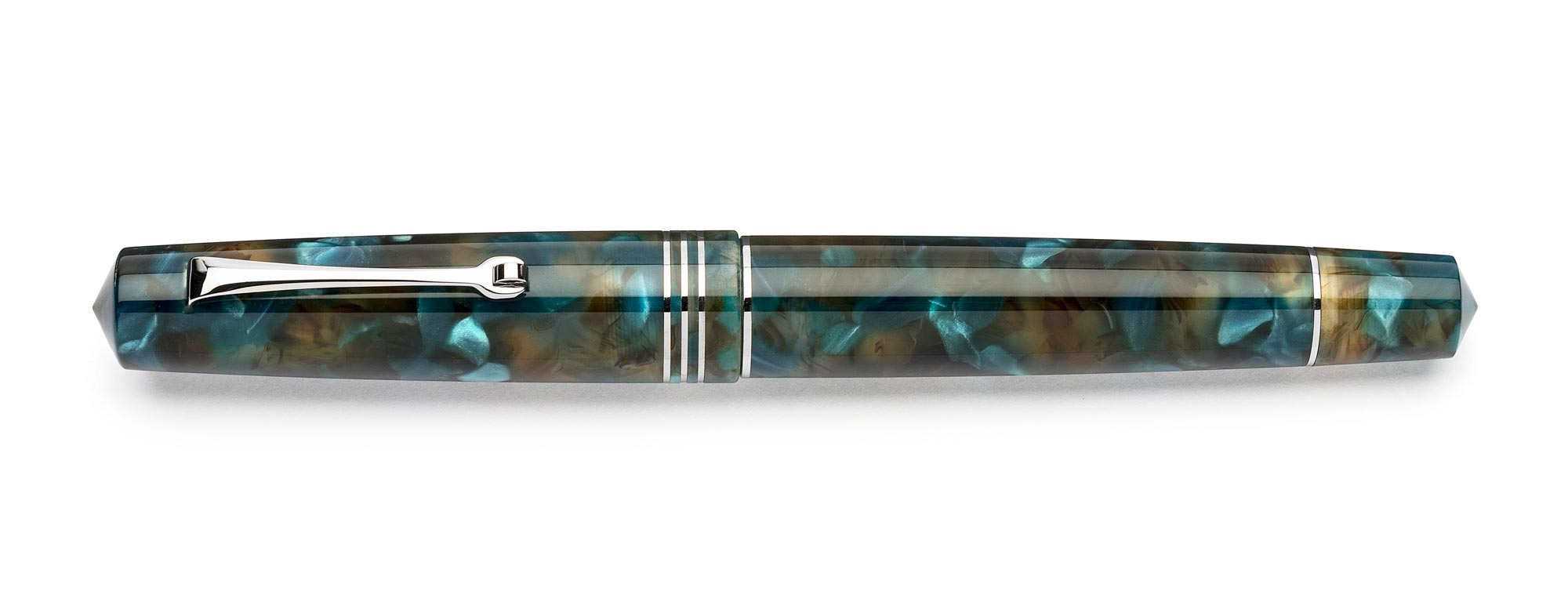 Disegnata nel 2017 seguendo le linee classiche delle stilografiche anni ’30; 3 anellini sul cappuccio, clip “ruzzolina” e le estremità coniche.