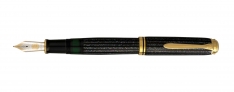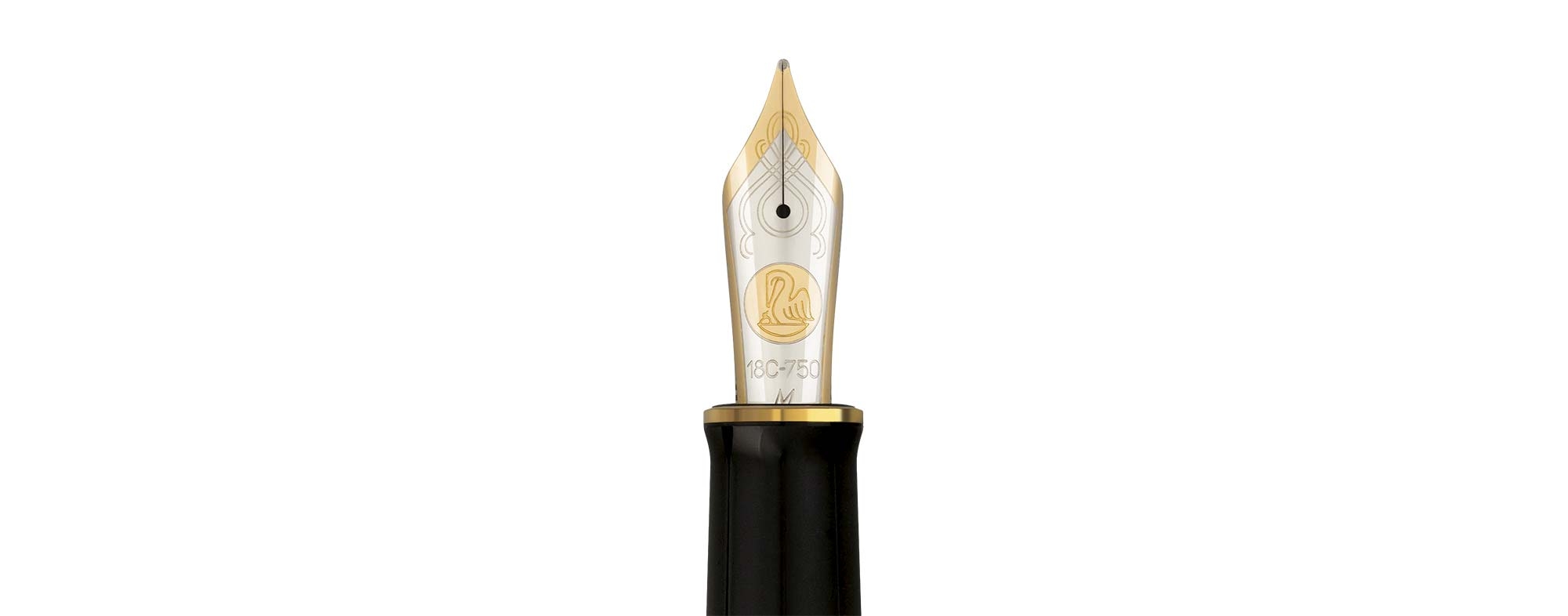 Abbinata a luminosi dettagli placcati in oro 24k, tra cui la classica clip Pelikan e le doppie fasce del cappuccio, questa penna rappresenta un lusso senza tempo.