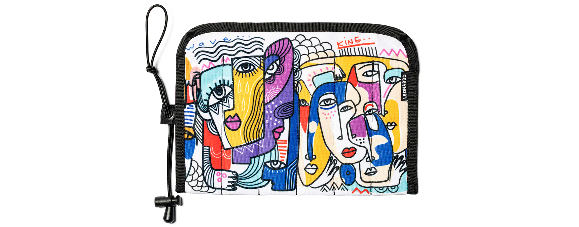 Astuccio portapenne Leonardo con l'iconica illustrazione ispirata al cubismo! Volti, occhi, labbra e colori donano vivacità e freschezza alle tue giornate di lavoro o al tuo tempo libero.