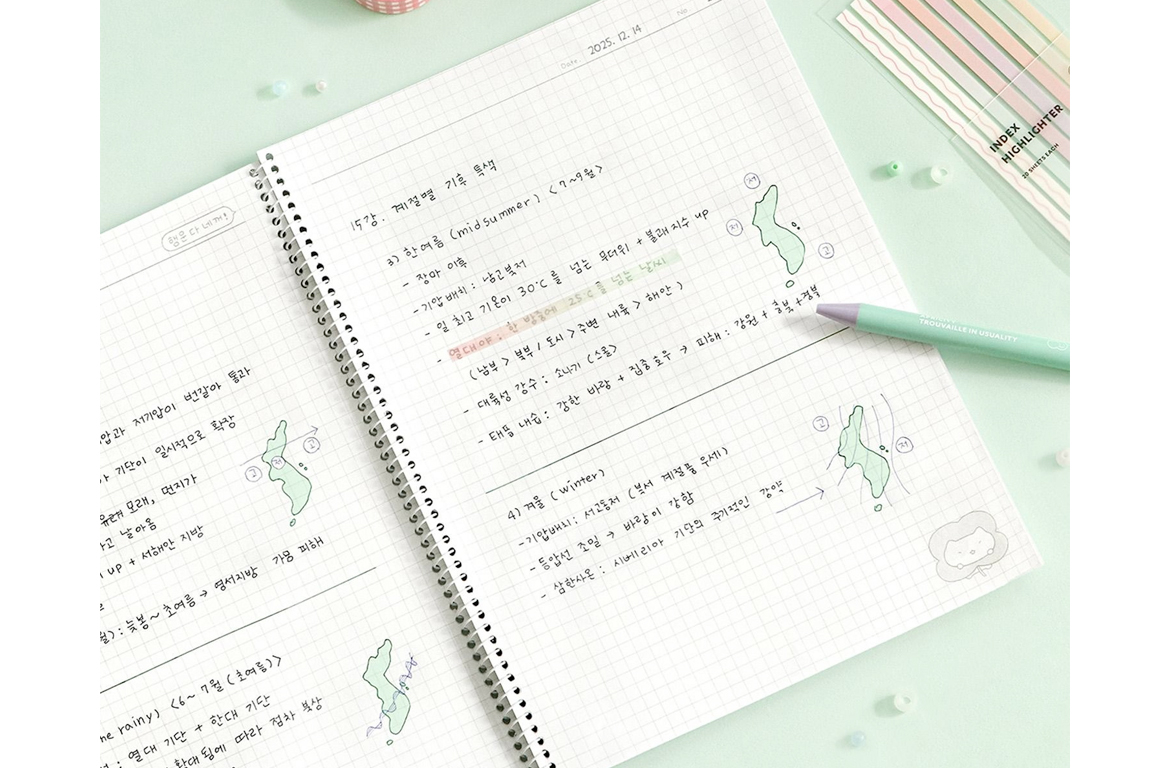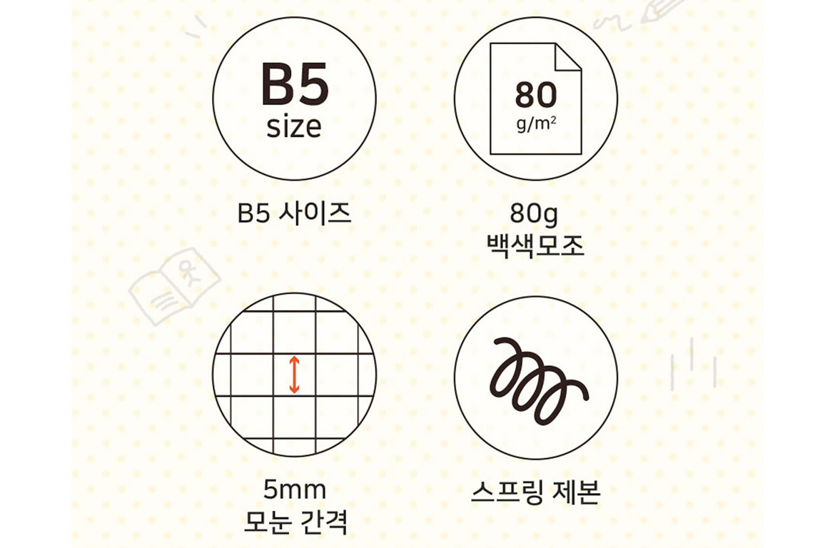 Formato B5 (192 × 257 mm): spazioso, comodo per gli appunti