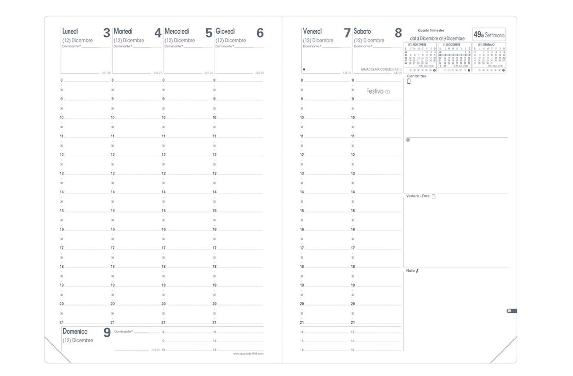 Agenda settimanale con presentazione della settimana su 2 pagine per avere una visione panoramica in un solo colpo d'occhio