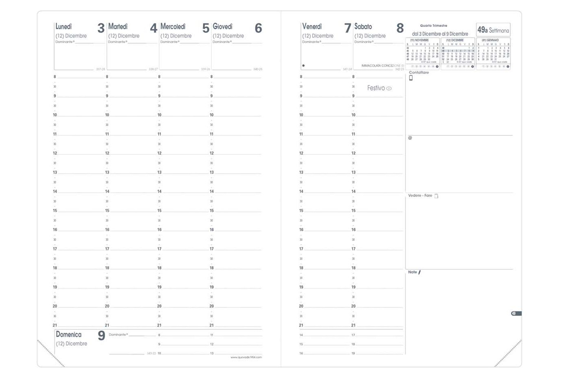 Agenda settimanale con presentazione della settimana su 2 pagine per avere una visione panoramica in un solo colpo d'occhio