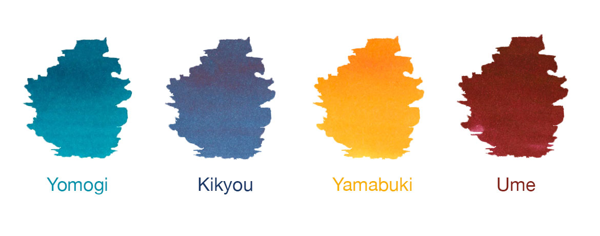 Il set Include 4 colori: Yomogi (verde), Kikyou (blu-viola), Yamabuki (giallo oro), Ume (rosa tenue)