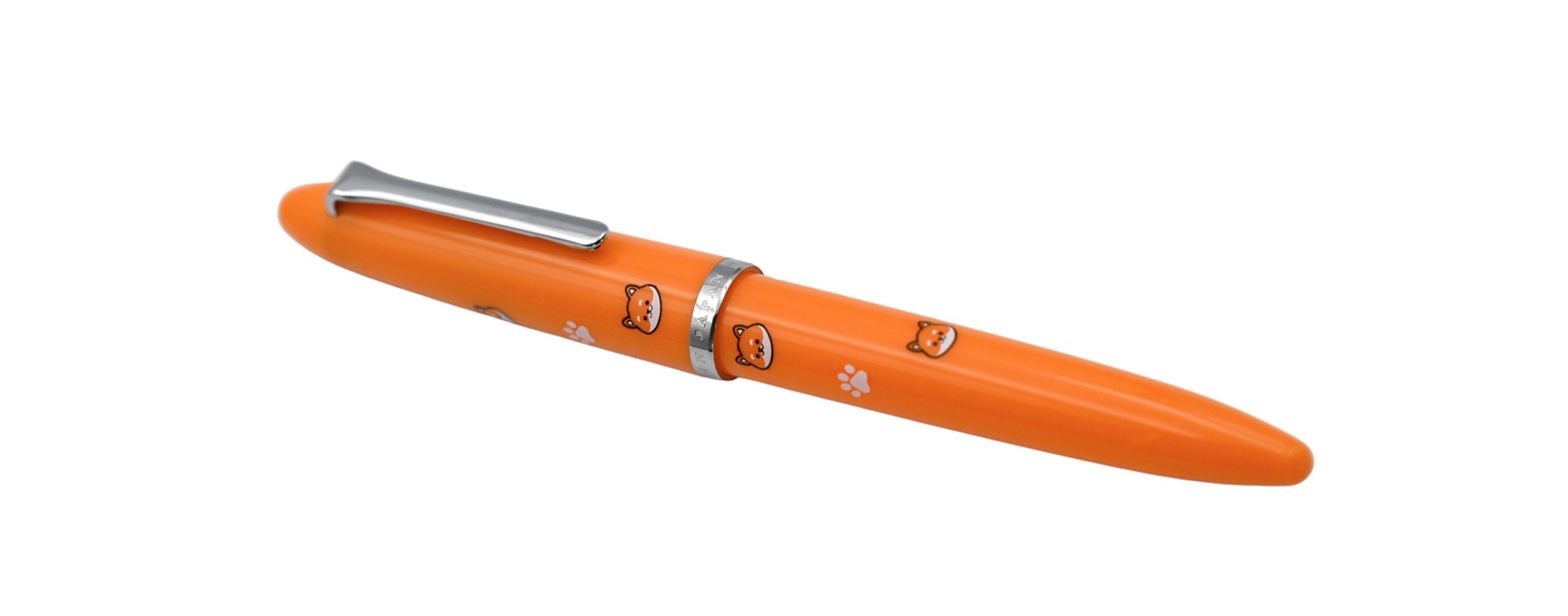 La penna stilografica Shiba Inu Jr presenta un corpo in resina PMMA arancione brillante, che richiama il caldo e iconico manto dello Shiba Inu. Impreziosita da finiture cromate in nichel, questa penna fonde colori vivaci con una raffinata lavorazione artigianale. È dotata di un pennino liscio in acciaio inossidabile, disponibile sia nella versione Media Fine (MF) che Fude, ideale per gli amanti della scrittura espressiva o della calligrafia.