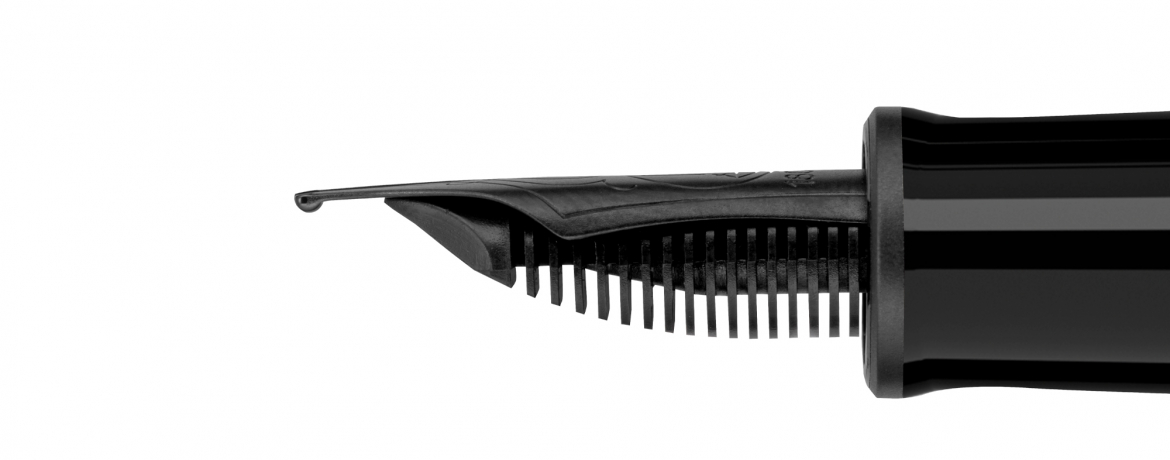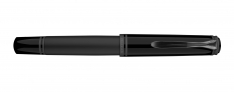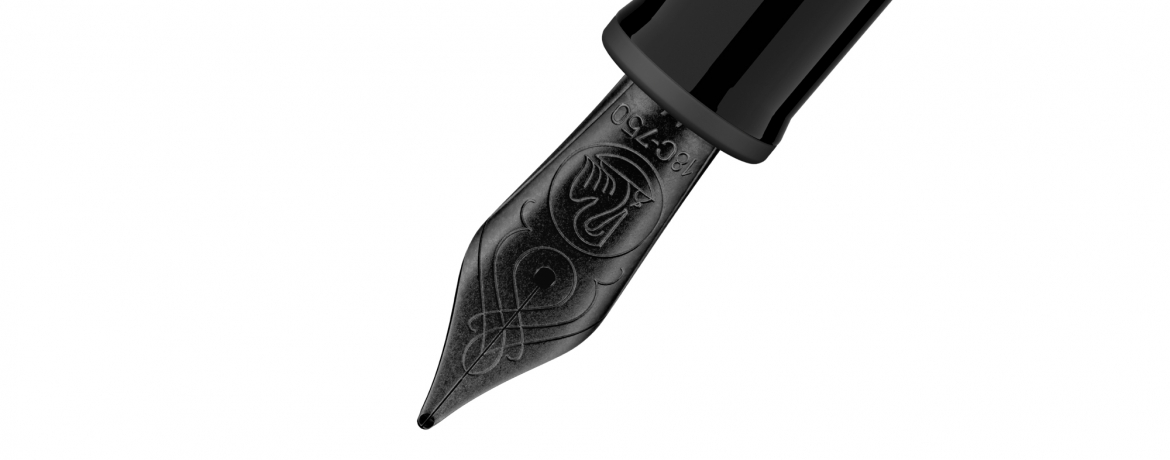 Dal fusto all’impugnatura, dalle verette al cappuccio, fino all’elegante pennino in oro 18 carati: ogni dettaglio è rifinito in nero opaco. Il look monocromatico è valorizzato da un raffinato contrasto di texture: il metallo satinato incontra la resina lucida, per una silhouette elegante e moderna.