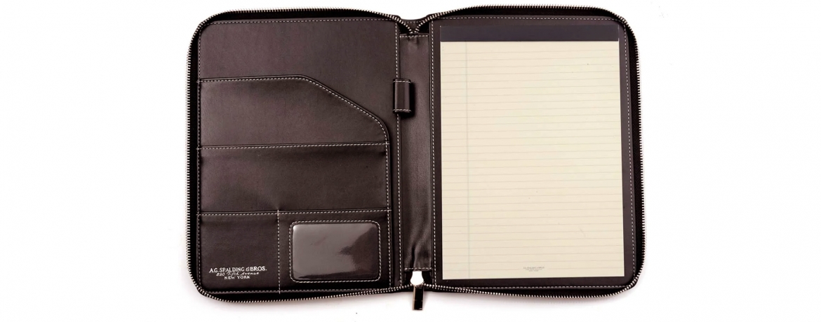 Contiene un blocco formato A5 in carta avorio personalizzata AGSpalding&Bros.