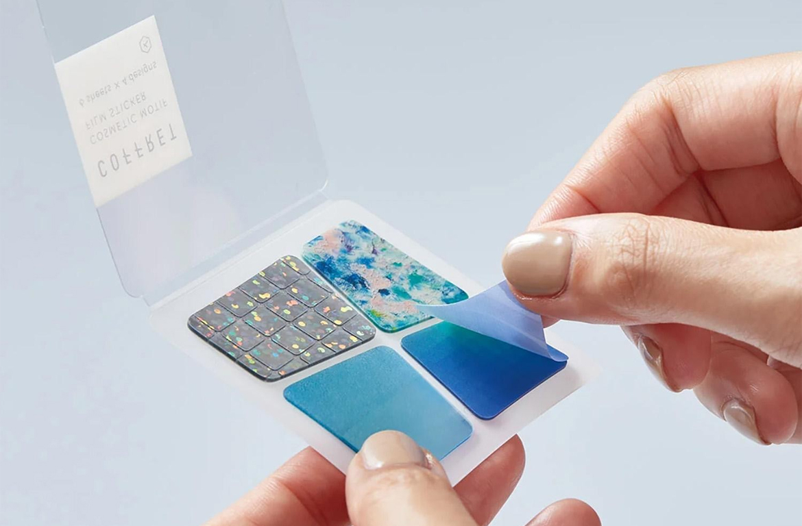 La collezione COFFRET, parte della linea HITOTOKI di King Jim, reinterpreta una palette trucco sotto forma di adesivi riposizionabili.
